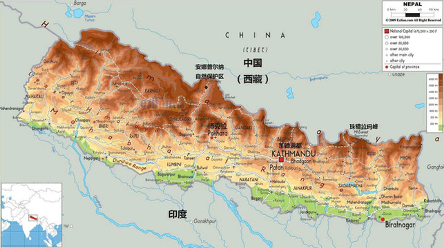 🗺地理位置:尼泊尔是一个南亚国家,位于喜马拉雅山南麓,一面与中国西藏接壤,另外三面被印度包围,是一个完全的内陆国。地势北高南低,北边多高山,南部多草原。