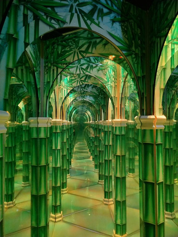 竹林迷宫以竹文化为主题,竹、镜、光影交相错落,壮观的迷宫之景让人仿佛身临其境,一场“奇幻冒险”就此开启。