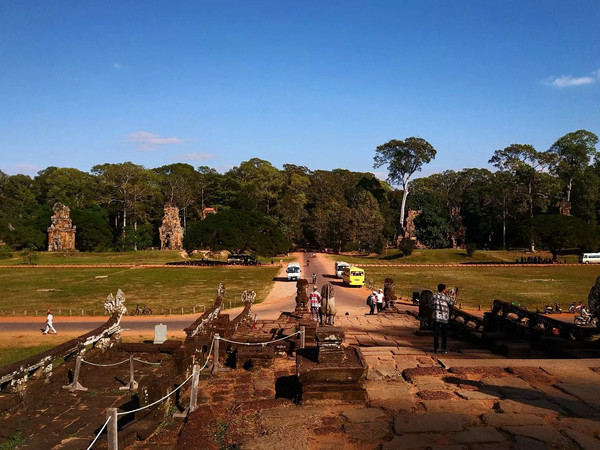 吴哥景区的所有景点都在暹粒市,主要景点也就距离市区五六公里吧。外国人到吴哥旅游,大都选择自由行,乘坐当地的突突车(电动三轮),一个景点一个景点慢慢看,但大多数国人还是选择跟团游。我还是很感谢我们的导游的,在主要的景点,给我们留的时间都很充裕。我认为最主要的景点是吴哥窟和巴绒寺,其次是塔普伦寺,通王城和女王宫,如果时间充足又有耐心,可以去巴肯山看日落。