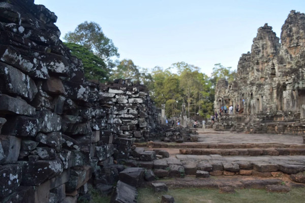 巴绒寺是第二个令人惊奇的景点,整个建筑非常宏伟壮观,令人惊叹。这又是用大石头堆砌而成的建筑,和吴哥窟不同的是,这里的佛塔的佛像是先雕刻好再放到塔上去的,所以塔的中间是有有空隙的。而让人感动的是那一座座面带各种笑容的石雕佛像,每一个佛像的笑容都是不同的,但其中有一个雕像的笑容最灿烂的,被世人称为吴哥的微笑,在导游的指导下我们找到了他。在暹粒很多宣传画或广告上都可以看到这个佛像。近一千年过去了,寺中的建筑有破损的,佛像也有被损毁的,但这座灿烂微笑的佛像保存的却很好,他的笑容依然让人们感受到那种从心中发出的快乐。