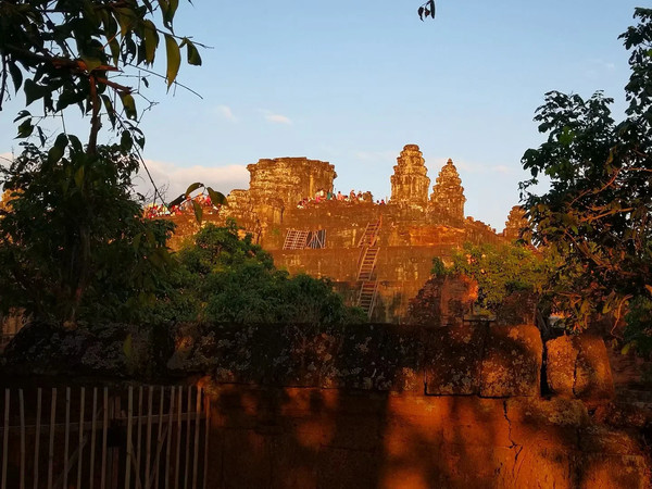 据说巴肯山的日落非常迷人,下午太阳落山前,导游带我们到达巴肯山,山顶上也有一座寺,我们上不了山顶,因为游客太多,而山上只允许300名游客停留,我们只好放弃观日落了。在山下看看将要落的太阳,夕阳的光辉给巴肯山披上了迷人的色彩。