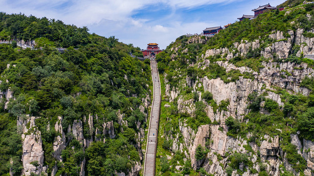 泰山的玩法有很多,最经典的还是从红门开始一路爬上南天门,有很多游客选择夜爬泰山,只为一睹日出的美景。但若是想轻松一些,把时间更多放在感受泰山顶上的风光,你也可以选择从中天门乘坐缆车直达顶峰。