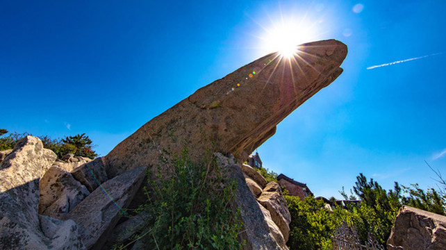 探海石,是位于岱顶的一块突兀伸出的怪石,石长6.5米,是泰山标志之一,也是登岱观日出的好地方,其上可观云海玉盘奇景。