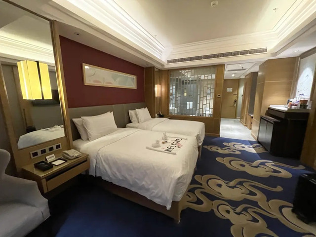 2⃣️酒店我们住的是泰安蓝海御华大饭店(有专属的贴身管家服务并且服务炒鸡无敌好!卫生很干净,屋内矿泉水免费)酒店内就有超市哦,不想出门门吃饭可以选择酒店内的饭菜,味道超级棒,一楼海鲜自助超级超级好吃,菜品应有尽有!第二天晚上我和我小姐妹去酒店二楼零点厅用的餐,好吃又平价,超赞~