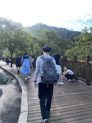 下景交车的木栈道上负重前行!