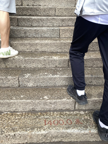 海拔1400米标识,终于快到南天门了,打卡留照!