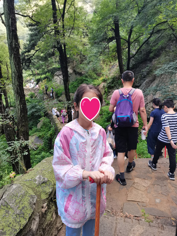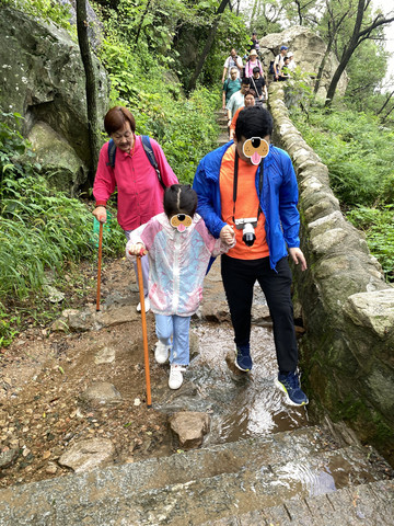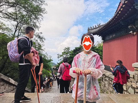 登泰山必备的两项辅助:登山杖和雨衣,我们住的丁格曼酒店前台免费提供登山杖(都是前面爬泰山的朋友留下的,免费取用),省去了我们自己去购买(买的话也不贵,天外村路边小店,5块钱两根),另外就是雨衣,(天外村小店也有卖,5块钱一个,一次性的)我们反复查了当天的天气,没有雨,所以就没有准备雨衣,只在前台拿了登山杖。