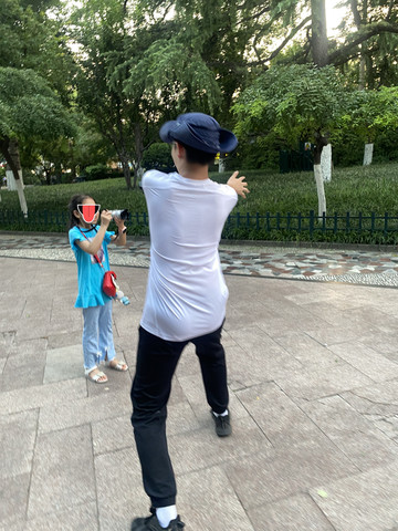 两个老幼,累的伸出了狗舌头!!!!不管怎么累,造型一定要cool!!!