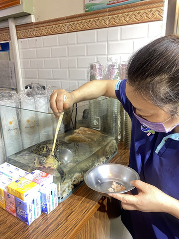 奶茶店里养的巴西龟,店员在喂新线鸡肉,伙食比我们还好,情何以堪啊,活的不如一只龟!