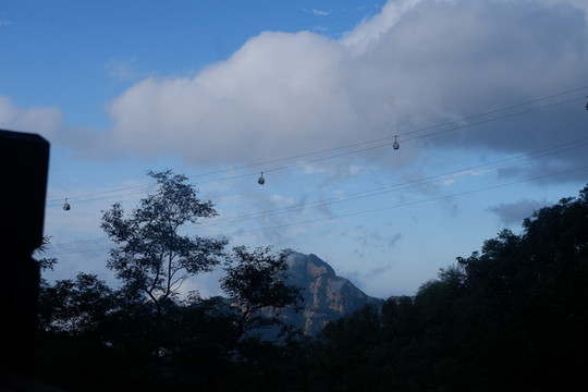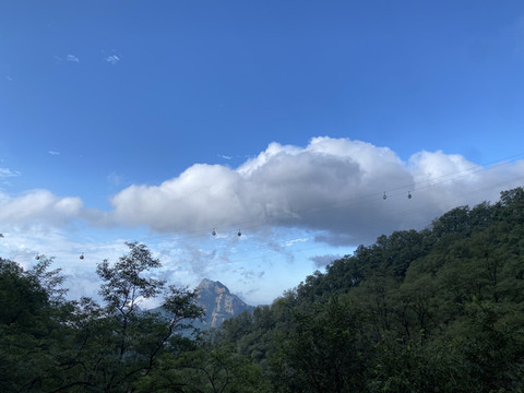 再次远眺缆车,像一个个小蚂蚁,天是真蓝、云是真白!!!!
