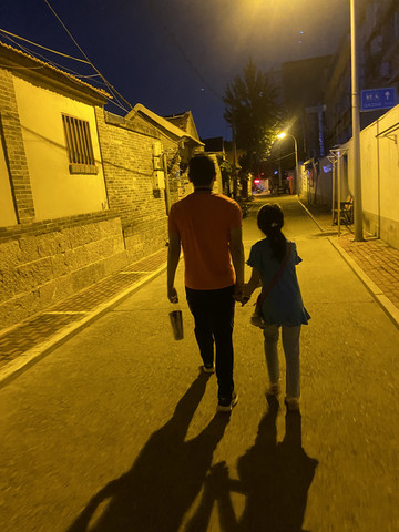一个负重前行的爸爸和一位步履蹒跚的丫头!