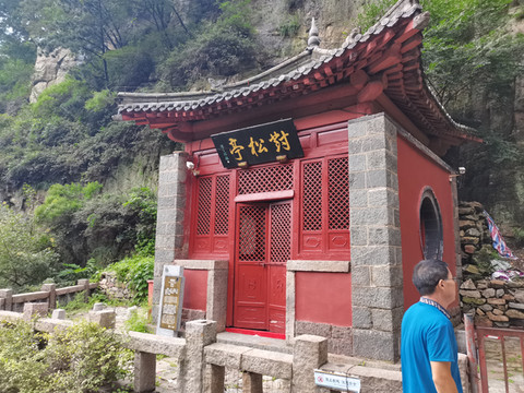 对松亭位于对松山开山南,登山盘道西侧。此处两山对峙,山峰多古松,青翠蔽日,亭遂因名。