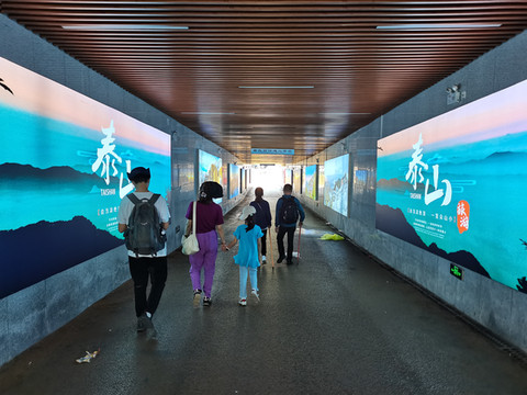 经过很长一段地下通道,这里的巨幅泰山旅游宣传,衷心希望管理方从细节处多多用心!