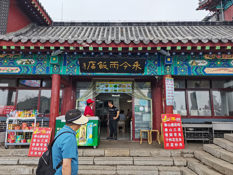 天街店铺林立,这里看到南天门宾馆,夜间可以接待上山的游客!