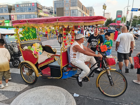 济南很多这种人力车,在大街小巷穿行,这个在其他城市也不多见!