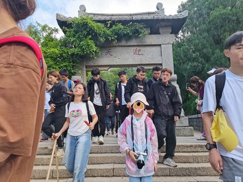 出行前认真查阅了近期泰山的游览攻略和游记,考虑到此行重点是威海和青岛,所以登泰山选了一条相对轻松的线路:前一天晚上住在天外村,第二天一早从天外村进入泰山,乘景交车直接到中天门,从中天门爬到南天门,游览天街后,缆车返回中天门,再次景交车返回天外村。这条线路会错过红门至中天门很多景点,旅行总要留些遗憾,这样可以为下一次旅行找到充足的理由。