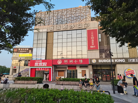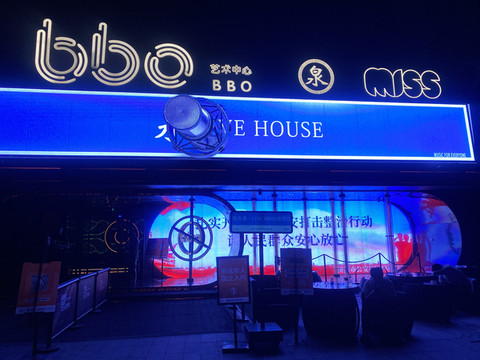 夜间街边的商店,bbo艺术中心,不知道是做什么的?