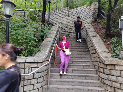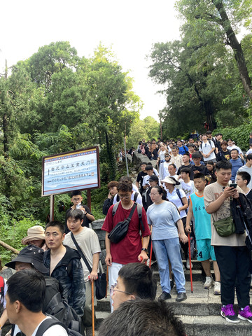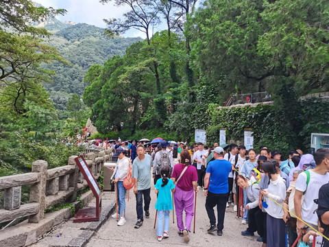 这个点,大部分都是昨晚登山观日出下山的游客,乌泱乌泱的,从中天门登南天门的山路也是从这里出发。