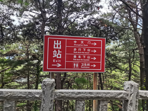 出索道站,有指示牌,我们要去中天门换景交车到天外村!