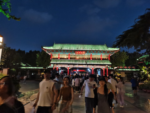 夜幕下的大明湖门楼,灯光点亮,非常璀璨!