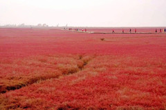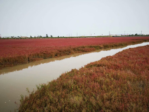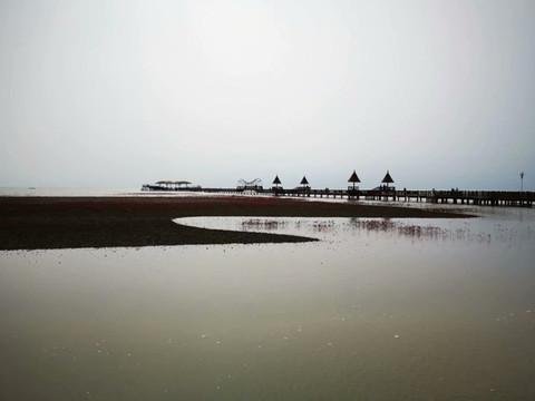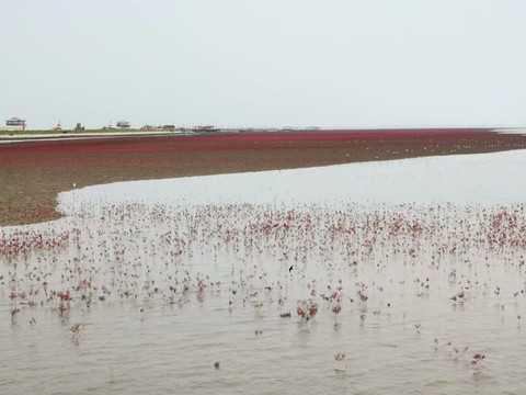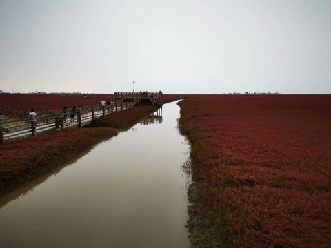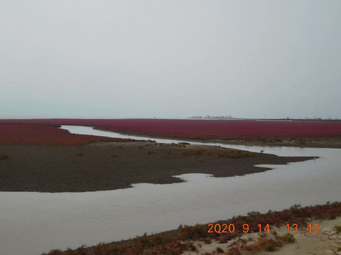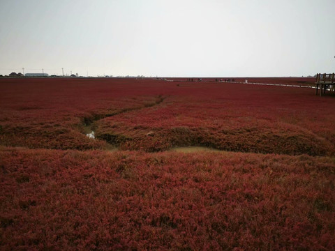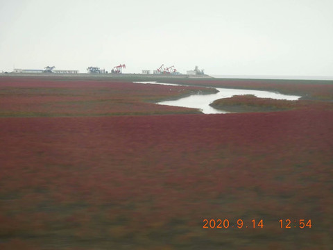 从沈阳坐了四个小时的车,终于到了盘锦的红海滩。