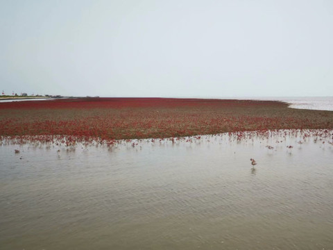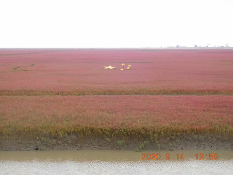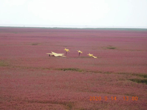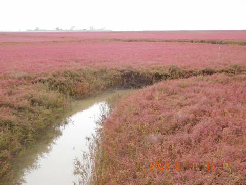 古语说,“关东山,三桩宝,人参、貂皮、乌拉草”。今人云,“盘锦市,三桩宝,螃蟹、大米、碱蓬草”。名闻遐迩的天下奇观红海滩就是由这成片成片退海湿地的先锋植物碱蓬草所构成。用不了几年,大片的红海滩就会被芦苇荡所取代。这是大自然的规律,所以红海滩是大自然馈赠给人类的珍宝,有句话说的好,脚踏红海滩,一生保平安。