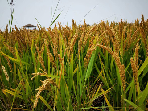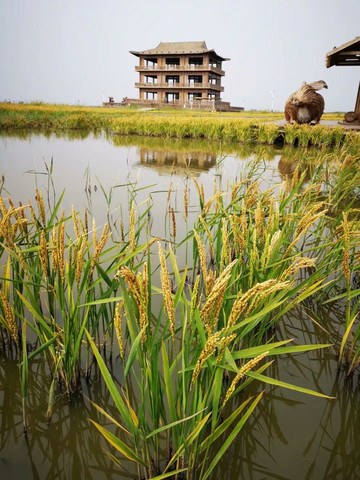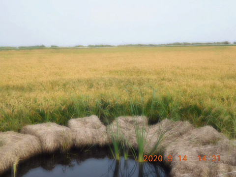 沉淀淀的稻穗颗粒饱满。盘锦大米全国闻名,是专供的,一般人买不到。