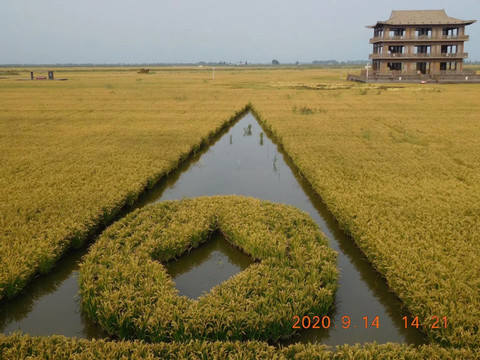 在不同的位置栽种不同的稻米品种,通过精细巧妙的排列组合,不同颜色叶子的稻米会在生长过程中自然铺陈出一幅幅美丽的图画。