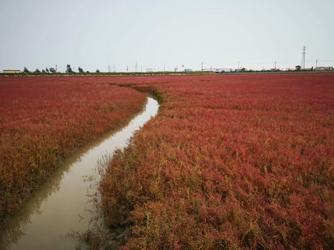 片片滩涂片片红,棵棵碱蓬草于千顷、万顷、乃至数十万顷的滩涂之上,一株一笔,一笔一株,自由的生长,一颗颗的连成生命的底色,一片一片自由地泼洒着,恣肆狂飙地挥毫着,那属于生命的红,血液般的色彩,强烈鲜艳,那份大自然的恩赐,唯美的视界冲击,震撼人心。