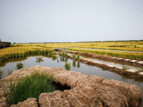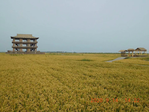 金色的稻田里,清凉的海风、灰蒙的天空(如果天空是湛蓝的就完美了)、弯曲的小路、古朴的栈道、仿古的亭台,美丽的风车……目光所及皆美景。