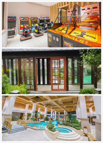 基本到下午5点所有项目都逛了一圈,也都累到瘫了。收拾下就向预订的酒店出发了,酒店确实有惊艳的感觉,完全的东南亚装修风格,外观随处林立的椰子树还以为到了东南亚呢,停车都是免费的,住宿在4楼办理,小伙子们也非常热情帮忙提行李,前台看到带着孩子还让服务员给准备了儿童用品,非常贴心。房间真是超级大,显得配备的1.8米床有点小,房间带着小露台可以看到酒店温泉,洗浴间特别大,有浴缸,洗漱区,淋浴区都单独分开了,非常喜欢这点。