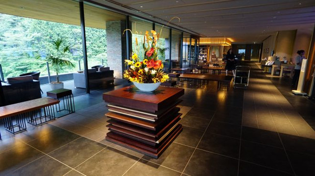 这家酒店坐落在箱根山的半山腰,坐车需要绕一下九九十八弯的山路。第一印象酒店走的是极简高级日风,整个酒店最多的就是有需要一块块透明大落地窗走廊,让你仿佛置身于山间。在办完入住手续后,在酒店大堂品一杯上好的咖啡(免费),边眺望这窗外美景,算一种舒雅的享受。