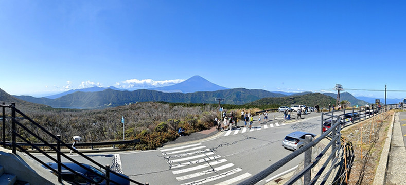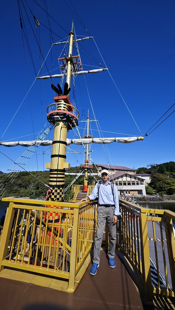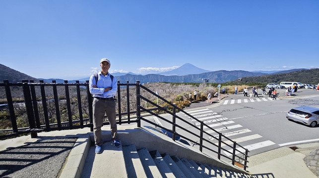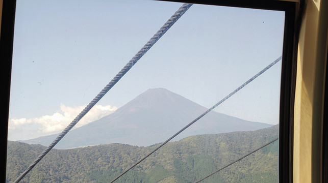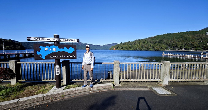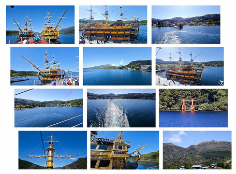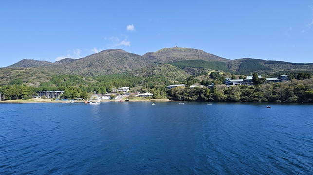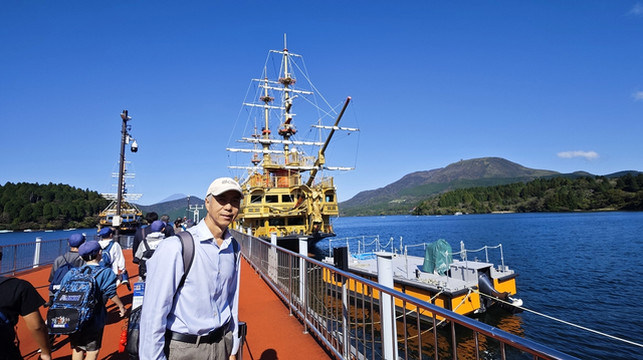 站在甲板上眺望富士山、芦之湖,太美了!