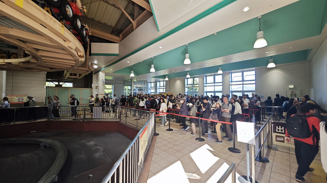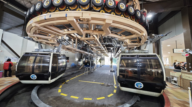 换乘上山缆车去大涌谷,需要排队二十分钟才坐上缆车。
