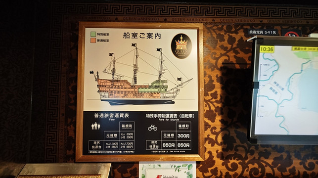 箱根海贼船是芦之湖(火山堰塞湖)上的主题观光船,外观设计为海盗船风格,船内装饰包括3D艺术、海贼主题物品和船员人偶,营造趣味氛围,适合家庭和游客体验。