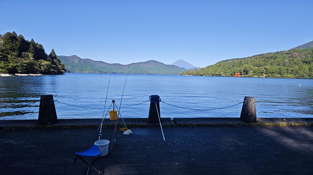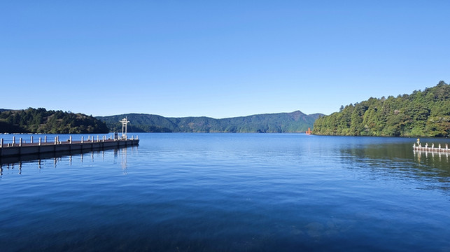 清晨的芦之湖非常宁静、美丽。