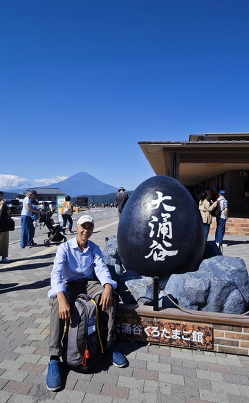 继续买大涌谷温泉蛋,与富士山、大涌谷温泉蛋合影。