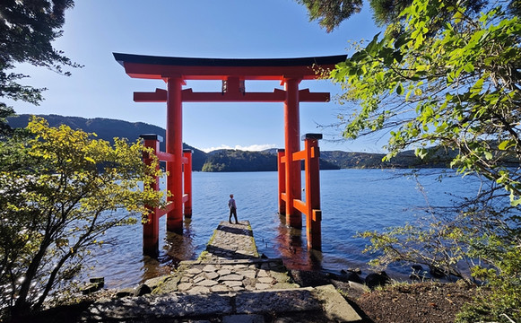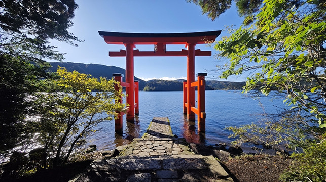 箱根神社湖上鸟居是位于日本神奈川县箱根町芦之湖畔的标志性建筑,建于757年,1952年重建为“和平鸟居”,以朱红色鸟居与湖光山色交融的景观闻名,是箱根最具代表性的打卡景点之一。