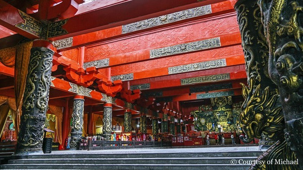 走过中宫门,进入复道,往前即后广场。复道:是狭长高耸的空间气场强大,大红灯笼有序的挂在墙角上,让人们赏心悦目,这个地方可是热门影视剧《陈情令》《庆余年》拍摄取景地。