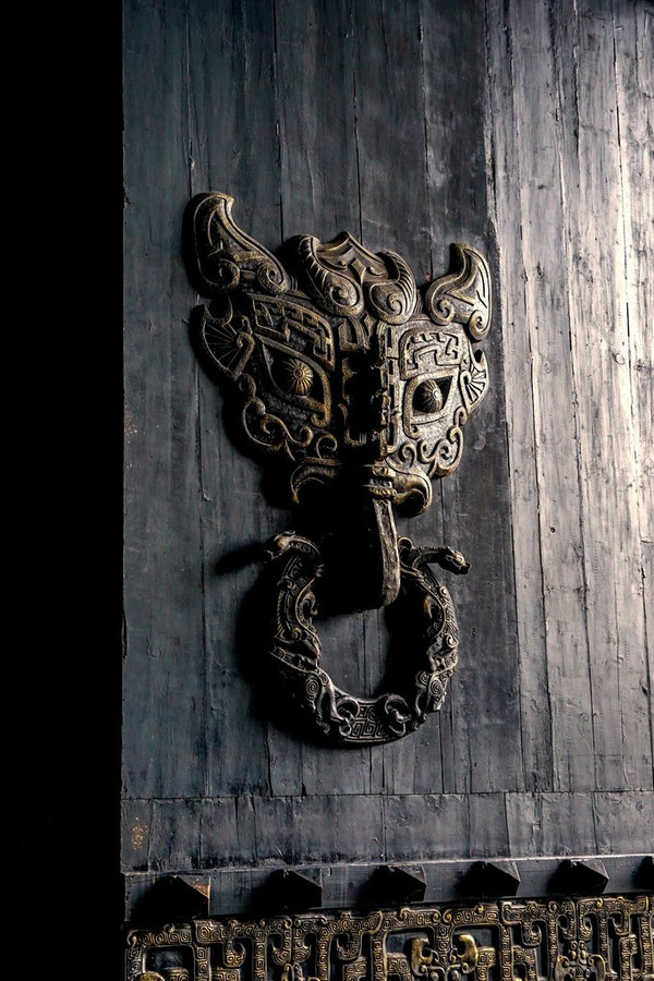一望无际的长廊纵横交错,进入正殿,那才叫个气派威严,因秦始皇深受阴阳五行学说影响,认为秦克周是土克水,所以整个宫以黑为贵,龙椅龙袍都是黑色的。殿堂内摆放了许多各种以假乱真的青铜器,兵器,长矛,利器,足可见秦始皇对统一天下的雄心。