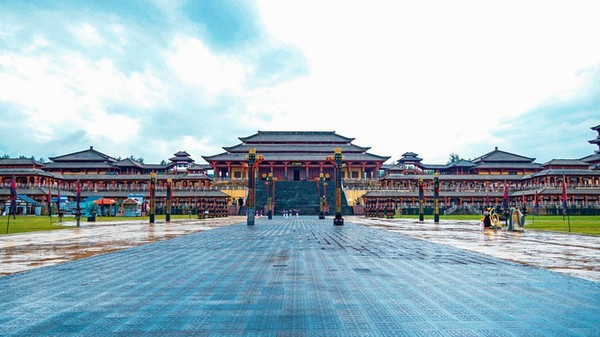 耳闻不如目睹,跨过这座城门,是宏伟壮观的秦王宫,巍峨的城墙,磅礴的建筑,高耸的垛口。令人豪情万丈,在蒙蒙雨雾中,秦王宫更显得巍峨庄严。秦王宫是横店众多景点的精华,景区仿建的原型就是秦咸阳宫,中宫门机关密布,昭示着秦宫的森严戒备。寓意深刻的九十九级台阶以及气势雄浑的四海归一殿,让人在潜移默化中深切体验秦始皇雄霸天下的威严气势。