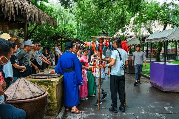 景区内有几处免费表演,其中就属《汴梁一梦》的杂技表演最为惊艳,剧场的规模也是最大。这些演出已然成为经典,只要有足够的时间,都要尽情去享受一场场视觉盛宴。这个表演一天只有两场,周末加演一场。早上10;00-10;35,下午14;00-14;35分。