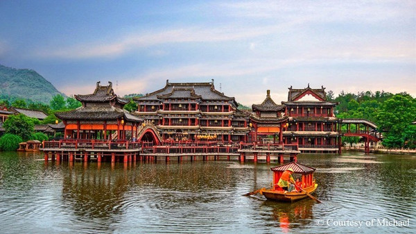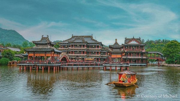 古朴的街巷融入老式火车,交错的河流汇入“珠江”,在这里既可观看大型影视特技水战演艺——《怒海争风》,还可看诙谐搞笑的大型影视特效情景演艺——《大话飞鸿》。可惜我们来的时候下起了暴雨,很遗憾的错过了这些精彩的演出。