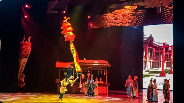 还有《笑破天门阵》——据说是大型影视特效摹仿秀,讲述杨宗保,穆桂英等人在天门阵遇到耶律皓南,杨家等人为破天门阵轮番上阵,最终在穆桂英的降龙木下取得最终胜利。遗憾的是因为当天下着暴雨,所以,未能如愿看到这场演出。