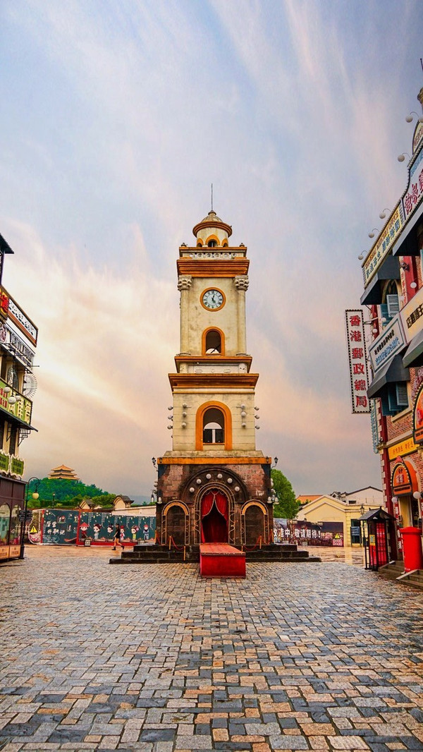 这里的江湖民国宫廷等各类建筑,你可在广州街香港街免费租借一套古装,或行侠仗义,或小家碧玉,或开启一段属于你的浪漫民国故事,在随处可见的店铺前,摆好pose进行拍照打卡,出片率超高。真的一身古装,一张照片带你穿越过去。