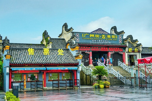 我们首先来到了民国建筑风格的广州街•香港街,它是横店影视城的发祥地,广州街建于1996年 是为配合谢晋导演拍摄历史巨片《鸦片战争》而兴建。广州街占地320亩,各式建筑达160余处,古街道纵横交错,珠江穿城而过,再现了一个19世纪的广州街市风貌。