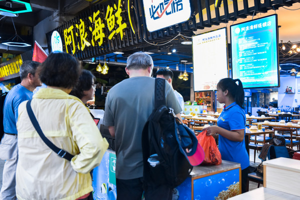 奥莱这边有专门的海鲜量贩式卖场,价格公道,童叟无欺,可以放心在这边购买海鲜,实在不放心可以拿到公平秤那边看看会不会缺斤短两。买好海鲜之后,就可以拿到店里面给服务员称斤,海鲜加工是按斤收费的,店里有详细的价格表,各种口味做法都有,比较推荐川味海鲜。