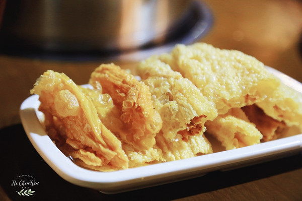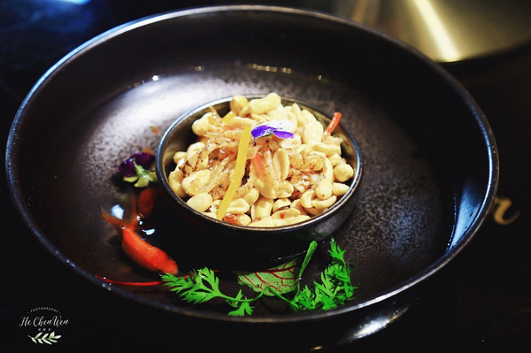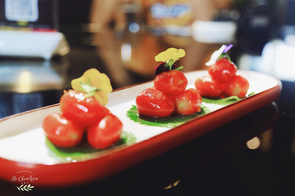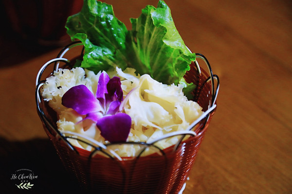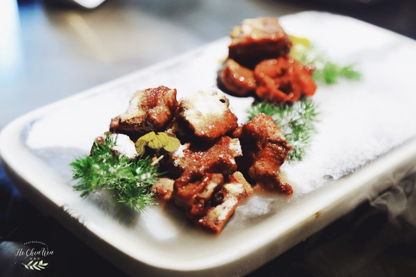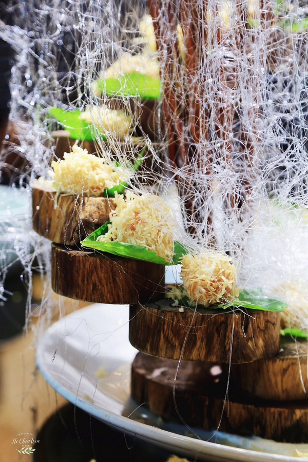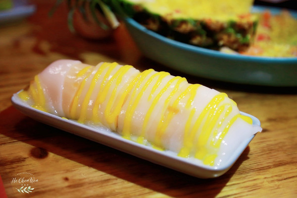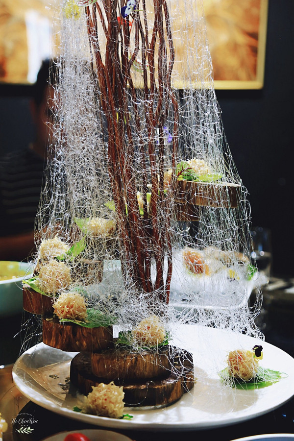 牛油果芥末虾球:很有创意的一道菜,虾球放在树上,还布满了丝壮的东西,好像是可以吃的。新鲜手工虾肉,牛油果搭配芥末,本来觉得有点黑暗料理,没想到牛油果和芥末并不冲突,还融合的很好。外表金黄酥脆,一口下去,好Q弹,让人回味无穷。
