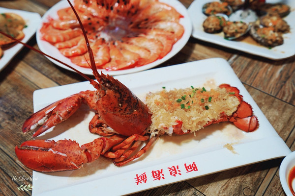 蒜蓉开边蒸大龙虾:龙虾不仅肉质细嫩,而且结实,味道鲜美,高蛋白,低脂肪,营养价值非常高。蒜蓉和粉丝融入龙虾肉,味道好极了。