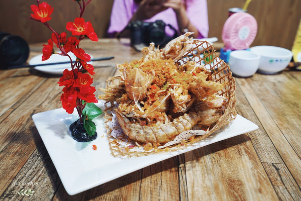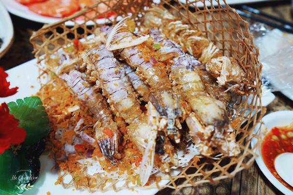 椒盐皮皮虾:这也是他们家必点的菜,我最喜欢的皮皮虾,每次来 三亚 都必点。他们家皮皮虾比手掌还大,外表酥脆,肉质鲜美,白里透红。一只接着一只,根本停不下来。对了,要是你不会剥皮皮虾,贴心的服务员会剥好端上桌,你只要负责吃就好啦。
